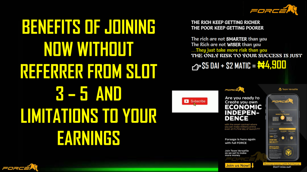 🌺 When you join NOW at this prelaunch you get 50% discount while you pay in full shortly afterwards. 🌺 The payment block chain is decentralised meaning no middleman. You're paid directly to your account 🌺 You are paid automatically and immediately you earn 🌺 You don't need to request withdrawal, because before you know that You've even earned, you've been paid 🌺 FORCE website cant shutdown, because it is built under blockchain 🌺 Even the founders of FORCE cant change the rule 🌺 FORCE can't be hacked 🌺 FORCE is a lifetime contract 🌺 In FORCE the levels can never expire 🌺 FORCE is not a get rich quick scheme 🌺 In FORCE you get rich gradually and consistently 🌺 In FORCE you earn when you don't refer anyone 🌺 In FORCE when 1 person joins, 2 people Earns 🌺 The earlier you join FORCE, the bigger your chances